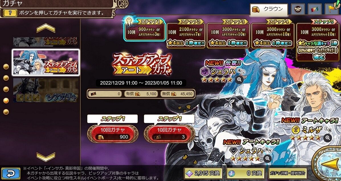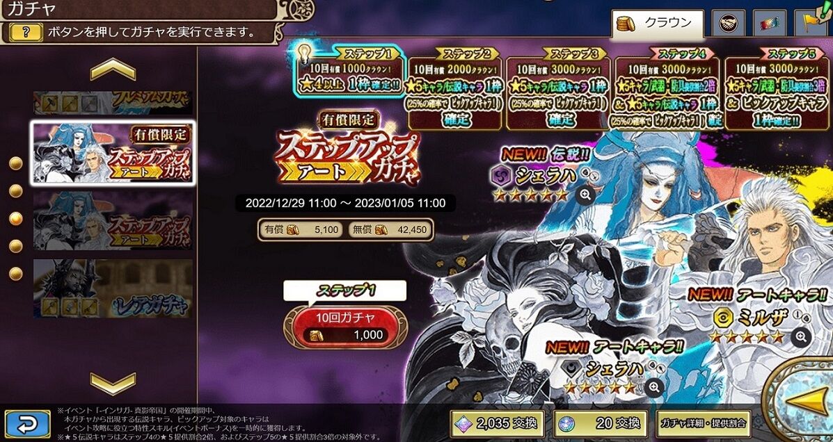引き続いて、アートステップで。伝説と同時ですので、実質的には編纂シェラハみたいなもんなんですかね? タイミング的に、追って編纂が来るとは考えにくいですし……。まぁひとまずはいつも通り、無償20連ストップで、