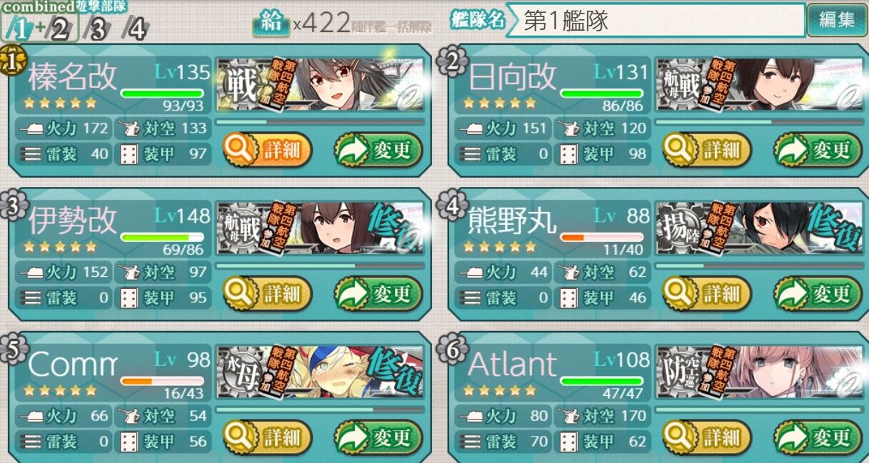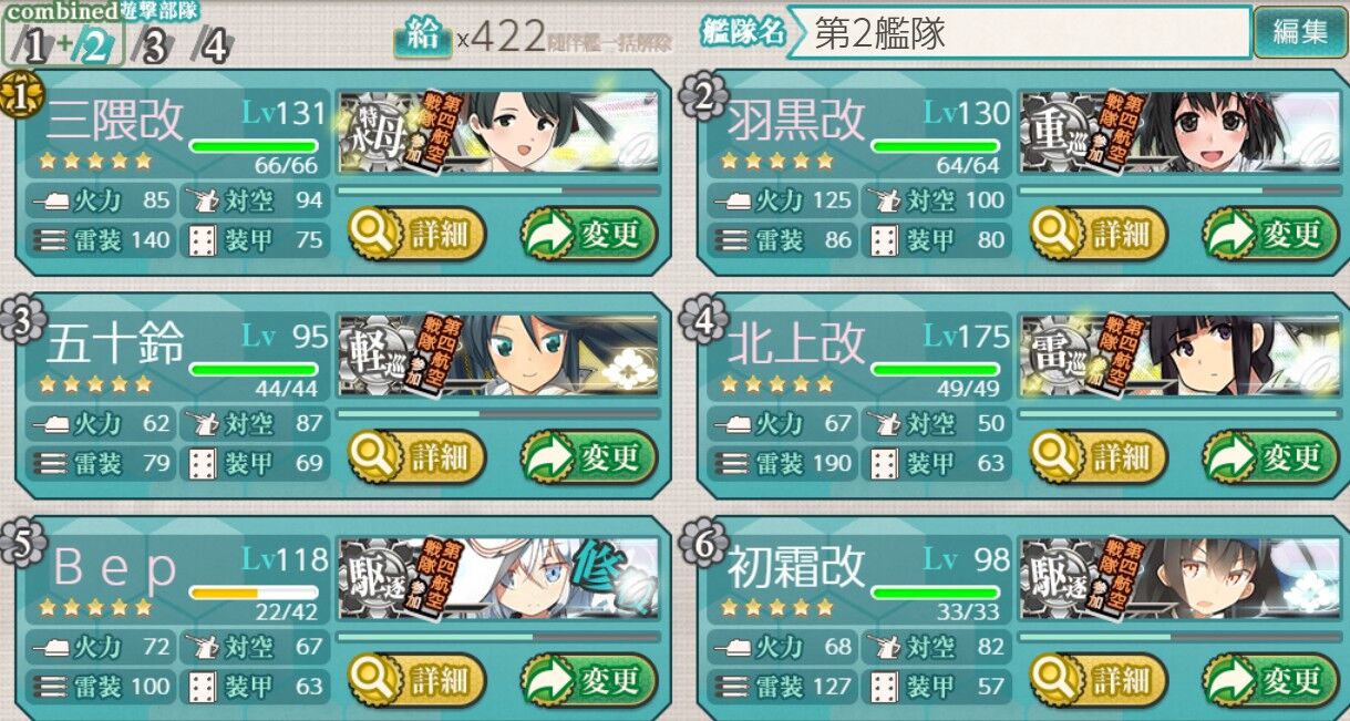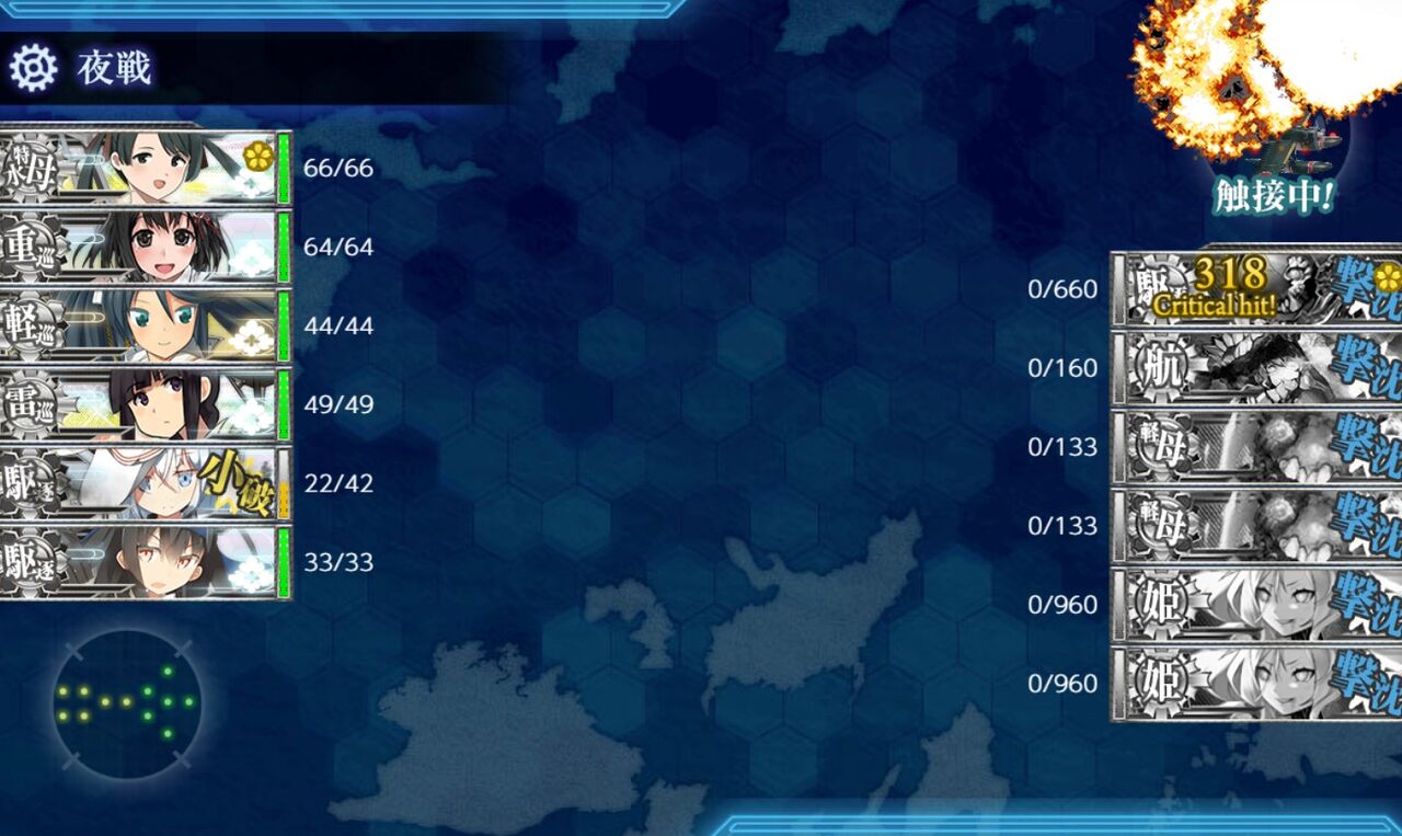 ぜかましからはちょっと変えました。一応対潜もあるワケですし、特効もあるんだから五十鈴は久々に出しておこうということで。さすがにラスダンは対潜なんてやってる暇ないので、煙幕と探照灯を詰め込みましたけど。ということで、