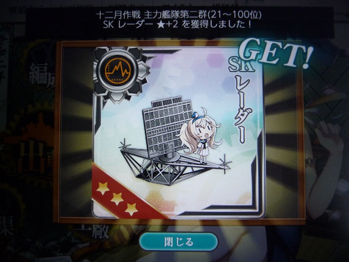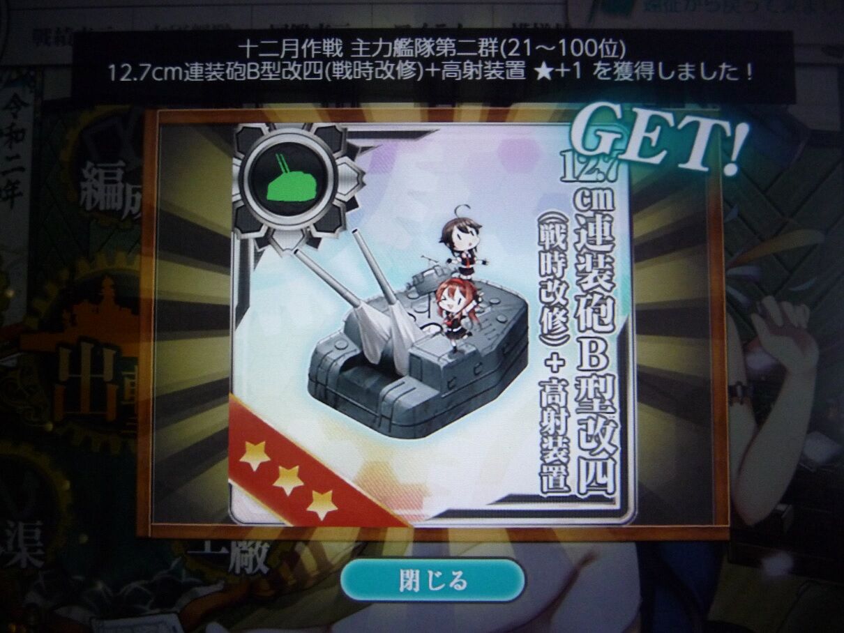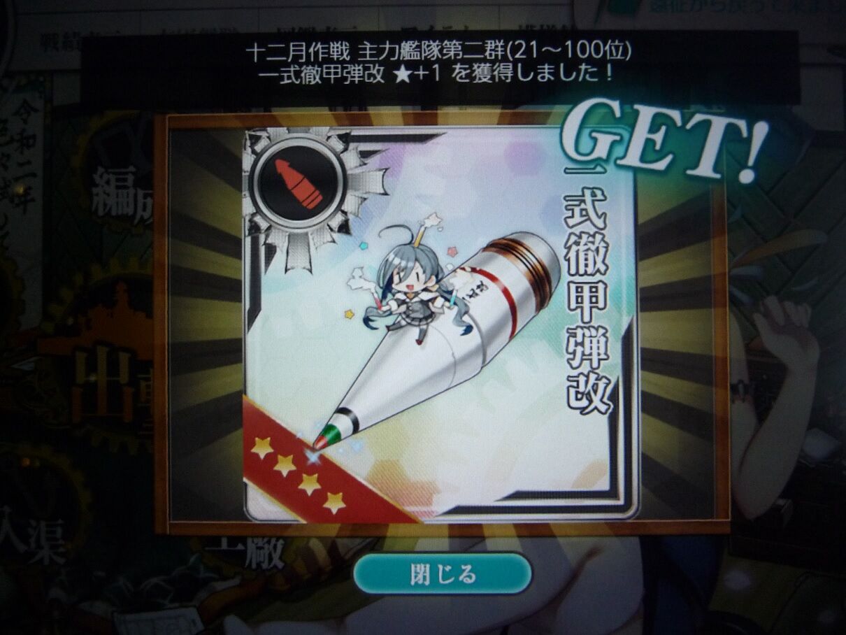 さて、見事に12月の報酬は獲得出来たワケですが……地味に、100位以内に入ってました。最後の発表時にまたギリギリ届いてなくて、「あぁやっぱここからが廃人度が高いんだな、俺ぁ『艦これ』に時間全部突っ込むなんてマゾプレイ出来ねぇから仕方ねぇな!」と思っていたら……予想以上に多くの人が、除外食らったんですかね? 実際、少なくとも95位以上ではあるみたいだしなぁ? まぁ、そんな考えても仕方ないことは置いといて、